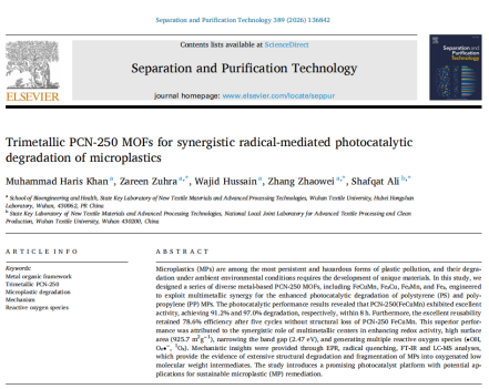 近日,我们生物医学工程与健康学院2024级留学生Muhammad Haris Khan以第一作者身份,在国际顶级学术期刊《Separation and Purificat...