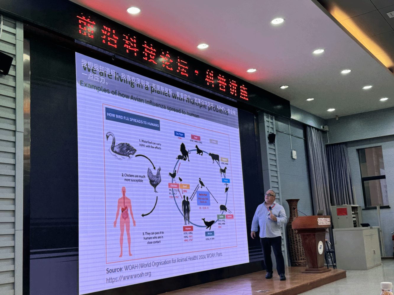 10月15日下午,Alejandro Cifuentes教授应邀前往华中科技大学附属中学,开展题为“同一健康:面向所有生命的健康”科普讲座,将前沿科学理念传递至青少年群体。